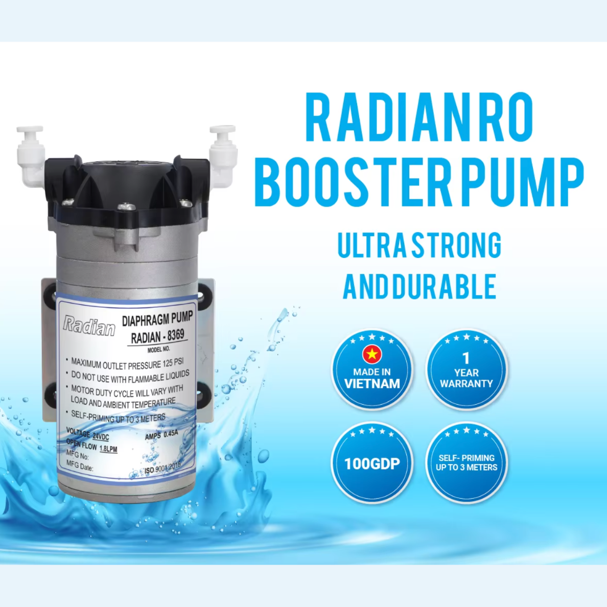 Built in Vietnam under strict quality standards, the Radian Pump enhances RO membrane efficiency while reducing energy waste, material loss, and system downtime — supporting greener RO systems for homes, offices, and light-commercial projects across global markets.