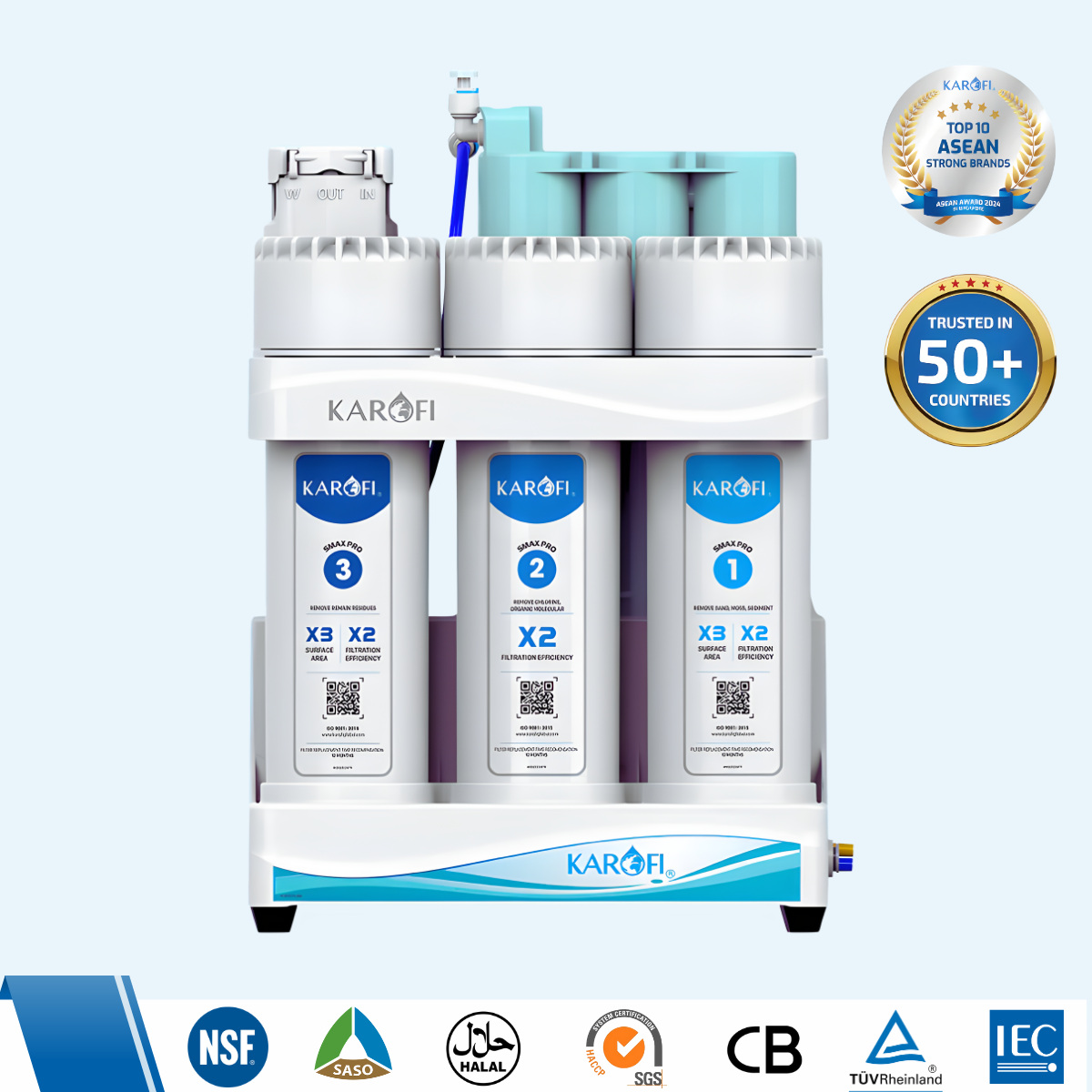 The Karofi KAQ-U05 Pro is a compact under-sink RO water purifier engineered for importers, OEMs, and distributors seeking premium purification performance in a small form factor. Combining Smax Pro V pre-filtration technology, U.S.-made Purifim RO membrane, and 6 functional post-filters, the U05 Pro ensures stable, high-efficiency water purification with long-lasting durability and effortless maintenance.